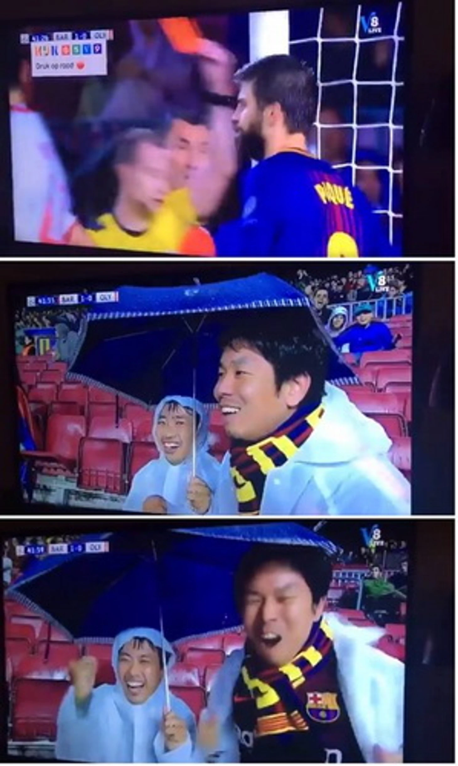 Кажется, эти болельщики «Барселоны» не очень понимают, что означает красная карточка