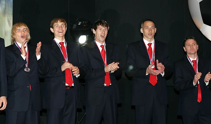 2006 год. Награждение "Спартака" серебряными медалями. Максим КАЛИНИЧЕНКО, Роман ПАВЛЮЧЕНКО, Егор ТИТОВ, Александр ЗУЕВ, Дмитрий АЛЕНИЧЕВ.