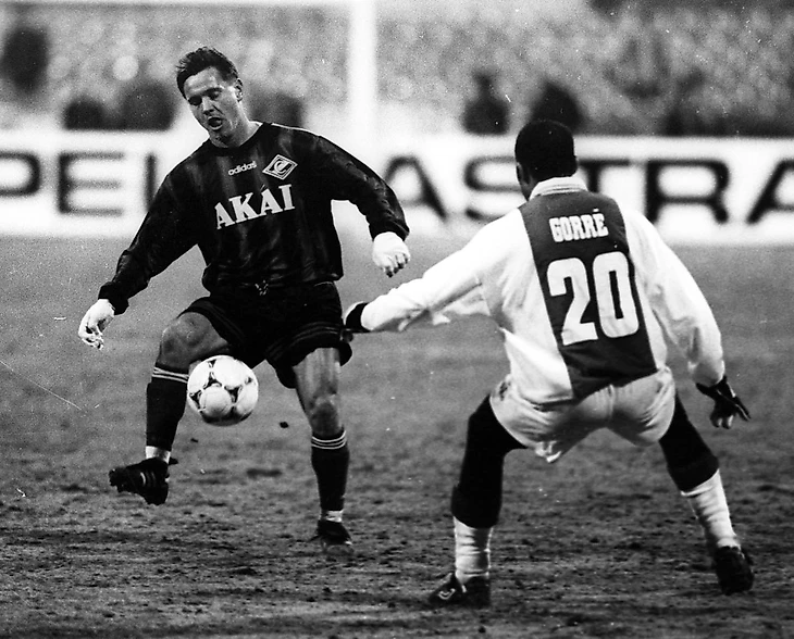 1998 год. Дмитрий АЛЕНИЧЕВ в матче 1/4 финала Кубка УЕФА с "Аяксом".