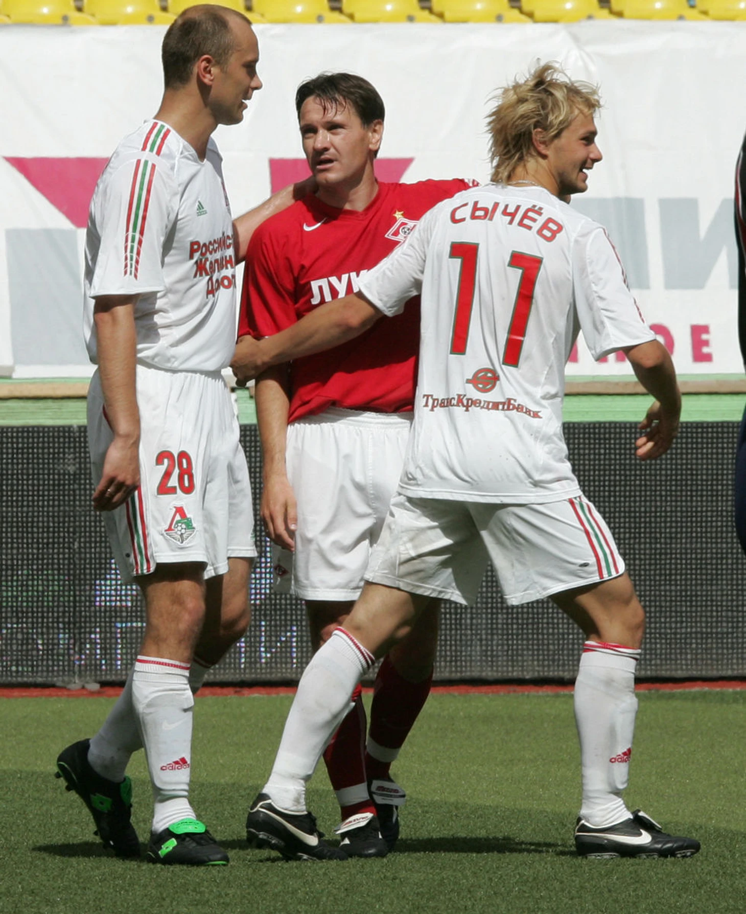 2005 год. Дмитрий АЛЕНИЧЕВ - снова в "Спартаке". С Дмитриями ХОХЛОВЫМ и СЫЧЕВЫМ из "Локо".