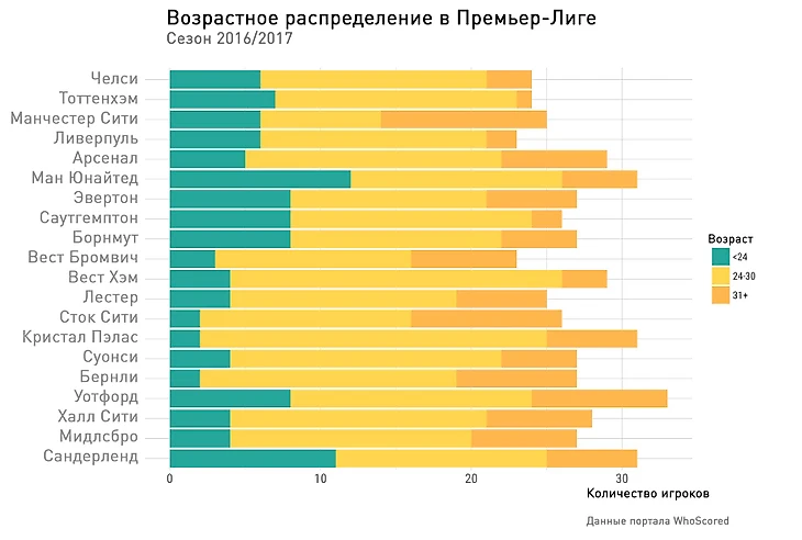 В целом, в командах АПЛ наблюдается хороший баланс в том, что касается возрастного распределения, однако в этом аспекте применяются разные стратегии.
