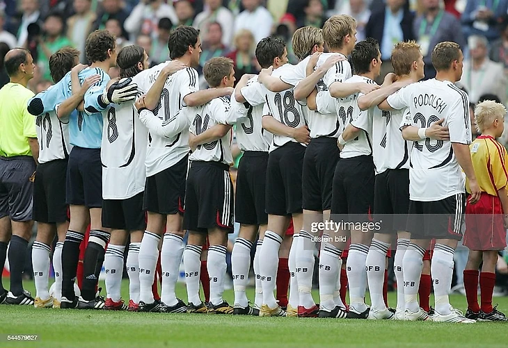 Юрген Клинсманн внушает нам: «Мы – команда». Чтобы подчеркнуть свою сплоченность, мы стоим рука об руку во время исполнения гимна. Для меня это не так уж и просто, потому что слева от меня стоит Кристоф Метцельдер, а справа Арне Фридрих, которые выше меня как минимум на полголовы.
