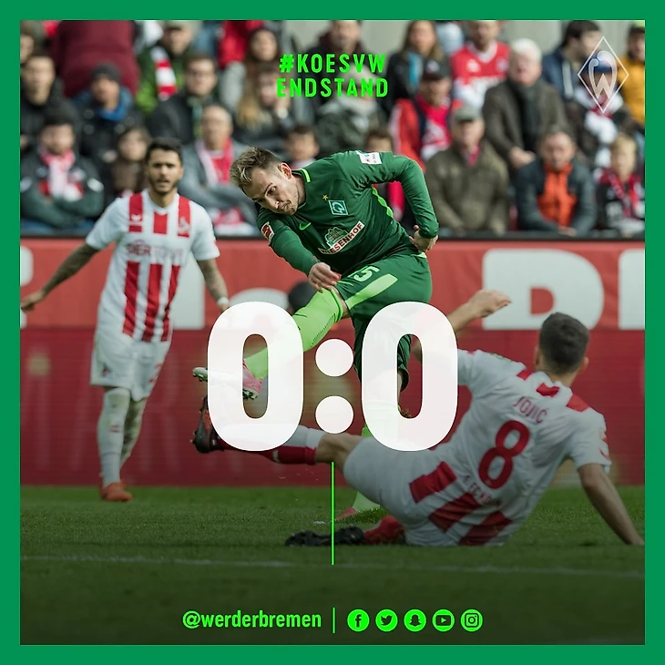 А вот с забитыми голами дело обстояло намного хуже. Несмотря на достаточное количество моментов, коих к финальному свистку набралось у хозяев 18 и 13 и гостей, в ворота мяч упорно не шел. Причем «Кельн» продолжал направлять свои удары в Павленку, а «Вердер» и вовсе оказался не в состоянии даже попасть в створ ворот.
