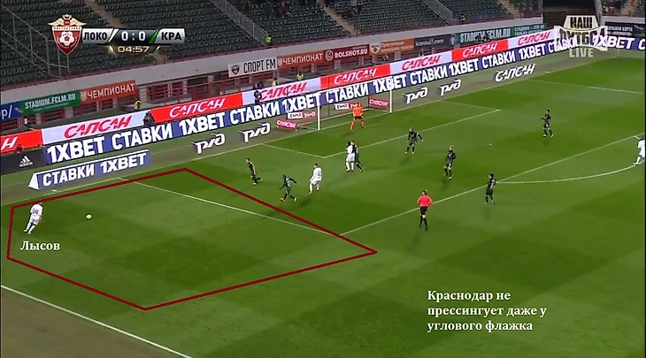 А ещё у «Краснодар» был момент, когда они не стали закрывать фланг и Лысов спокойно подал в штрафную. Думал, что это симптом, но отметил только один такой случай.