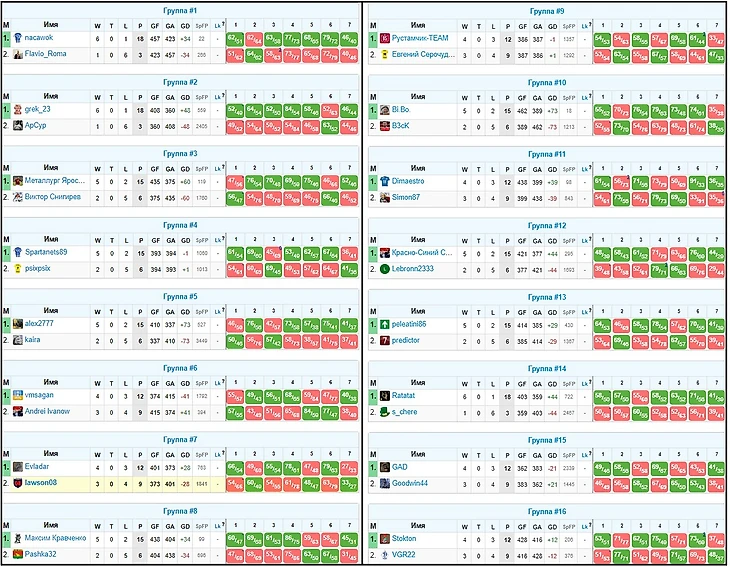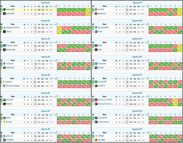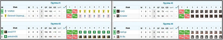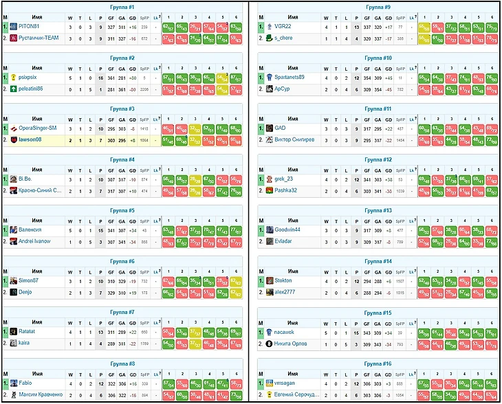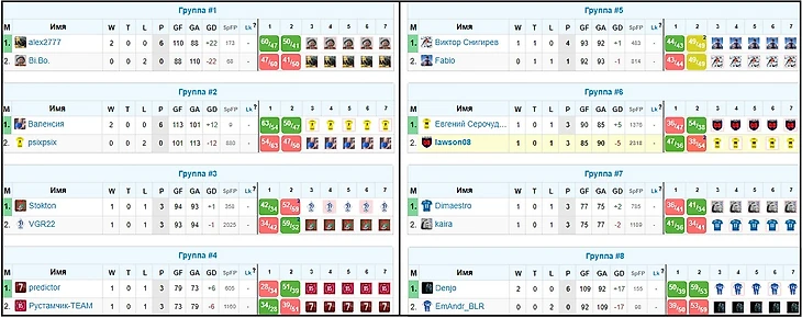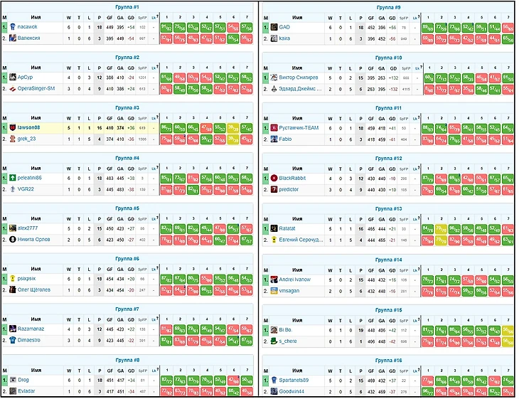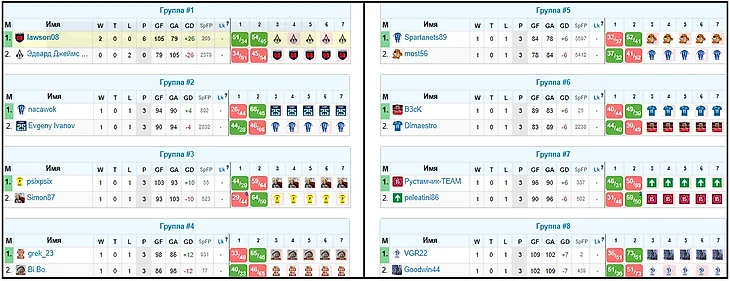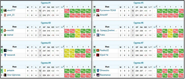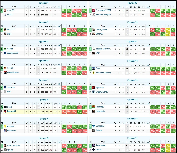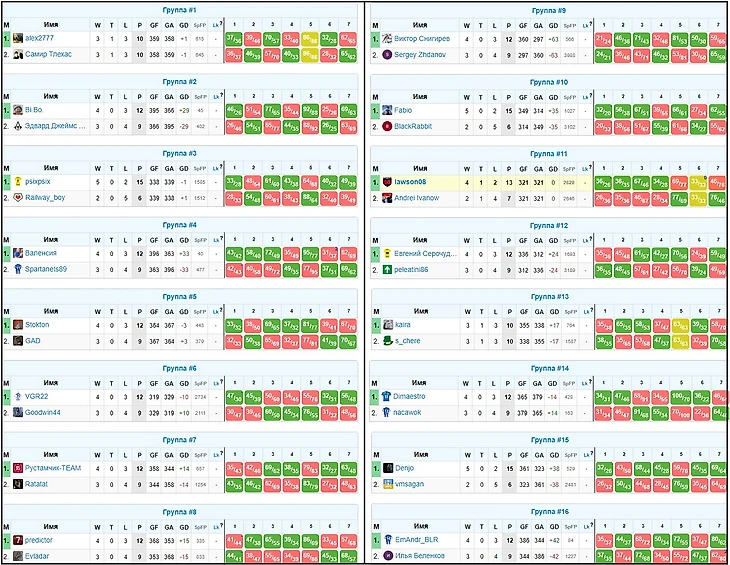 Fantasy H2H турниры. Промежуточные результаты платных Европейских турниров (кубковые)