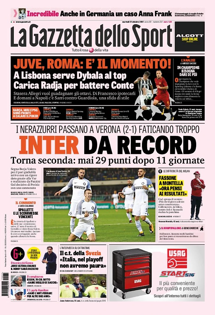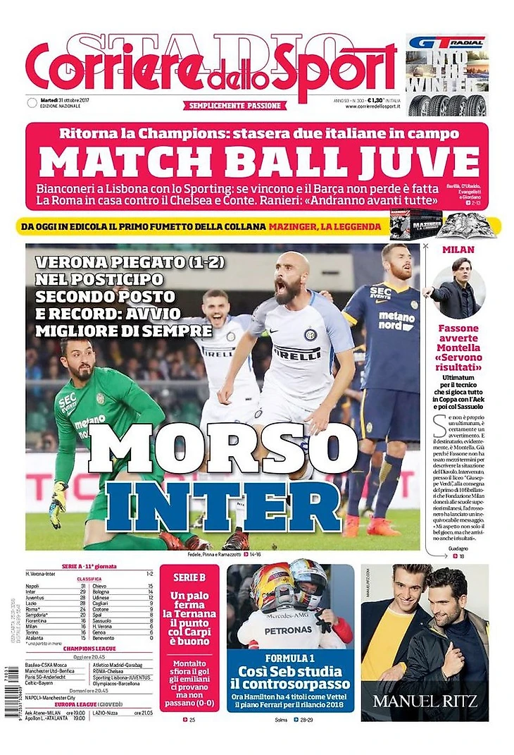 Укус «Интера». Заголовки Gazzetta, TuttoSport и Corriere за 31 октября