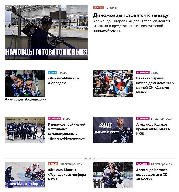 Дизайн у официальных сайтов «Зенита» и хоккейного минского «Динамо» очень похожи. При этом, авторы у сайтов разные.