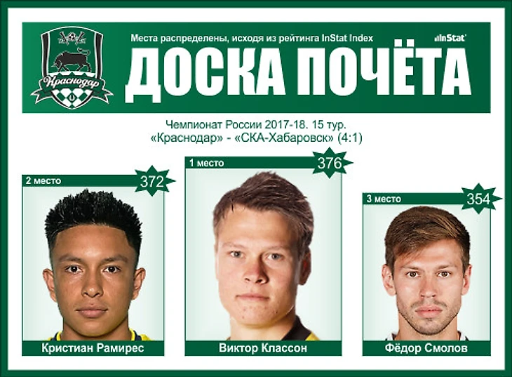 Тройка лучших игроков «Краснодара» в матче против «СКА-Хабаровска»