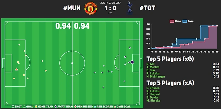 После перерыва игра «Юнайтед» кардинально изменилась: Матич стал играть гораздо агрессивнее, набив за 45 минут 4 перехвата, 1 отбор и 1 блок, создав 1 шанс. «Тоттенхэм» тоже не сидел сложа руки: самый опасный момент случился после заброса Эриксена на Алли, однако Деле не смог перевести мяч в ворота. Буквально через пару минут «Юнайтед» отвечал ударом Лукаку в штангу. Игра пошла на три результата, однако «Манчестер» был агрессивнее, сильнее, увереннее и давил на соперника более обозначено. К концу игры наши ребята смогли восстановить паритет по xG, а Марсьяль забил фантастический гол после сброса Лукаку.
