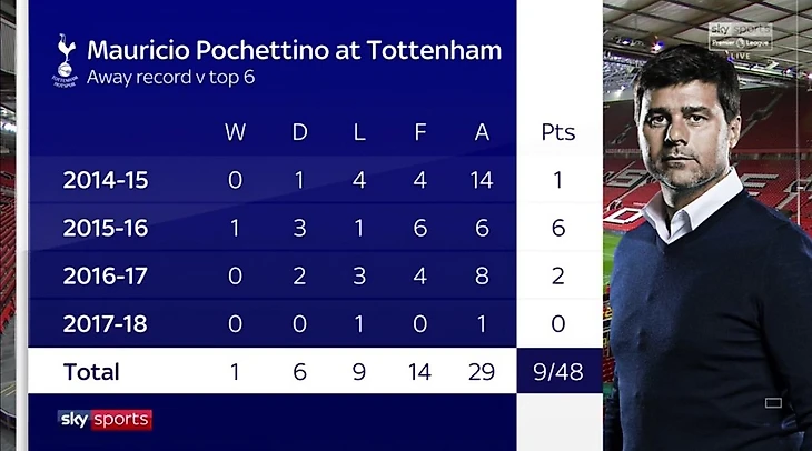 Интересная статистика Почеттино против топ-6 на выезде за 4 года: