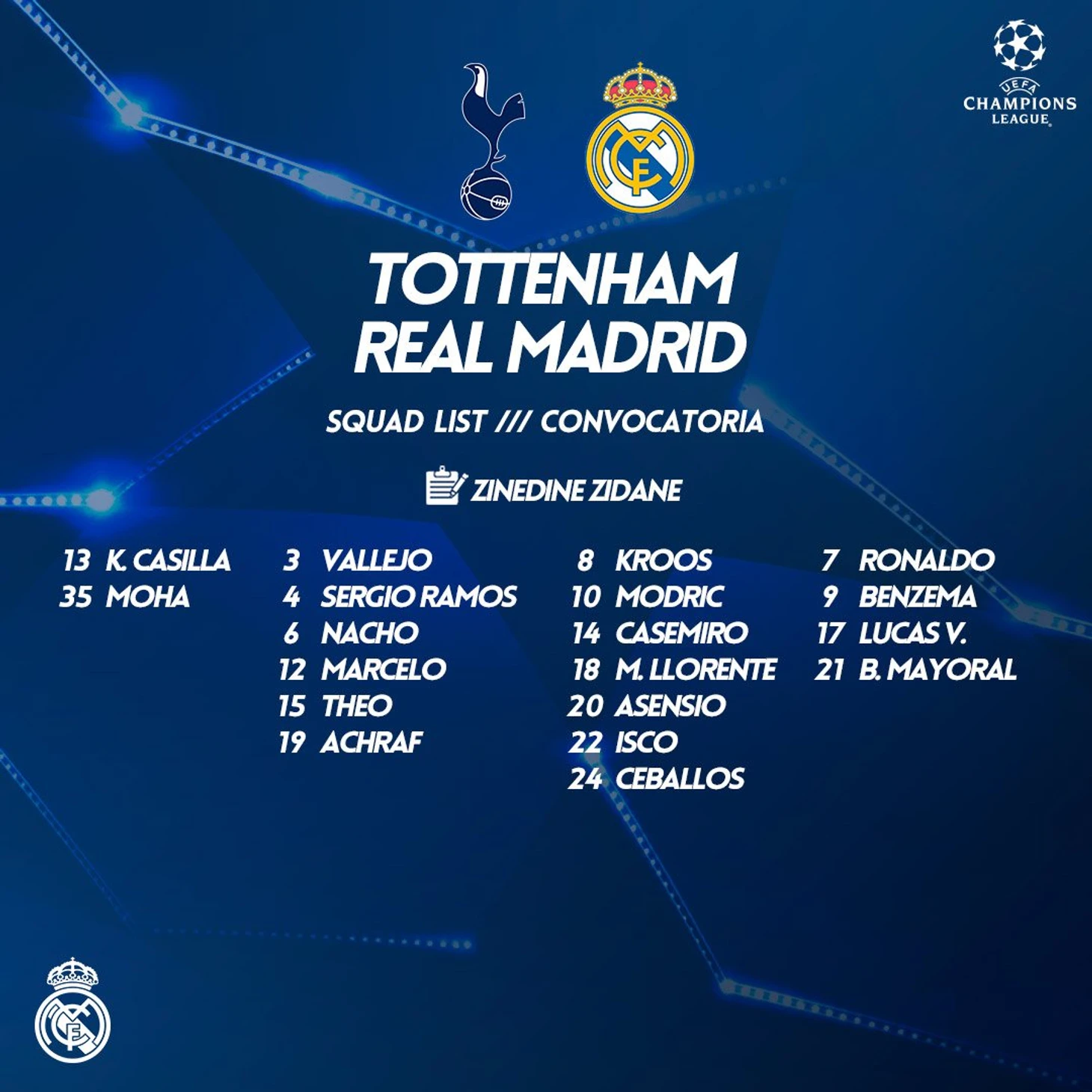 Заявка на матч и ожидаемый состав «Реал Мадрид»