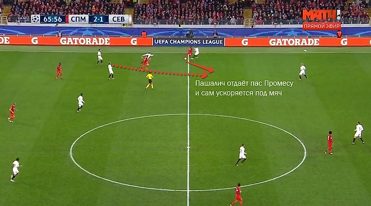 Отказ от полноценной «десятки» ради Пашалича тоже объясним. Эдуардо Бериццо – фанат жёсткой схемы 4-3-3: игроки в рамках тактического плана могут выполнять разные задачи (например, Хесус Навас часто садится дополнительным фланговым защитником, а при атаках на края отскакивает центральный нападающий Муриэль), но обязательно должны качественно расставляться для регулярного контроля мяча. И против такой системы игры Пашалич тоже важен: в московском матче хорват несколько раз, не вступая в отбор, разбивал контроль «Севильи» и помогал начать контратаку.
