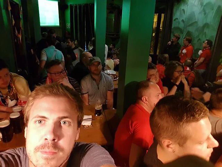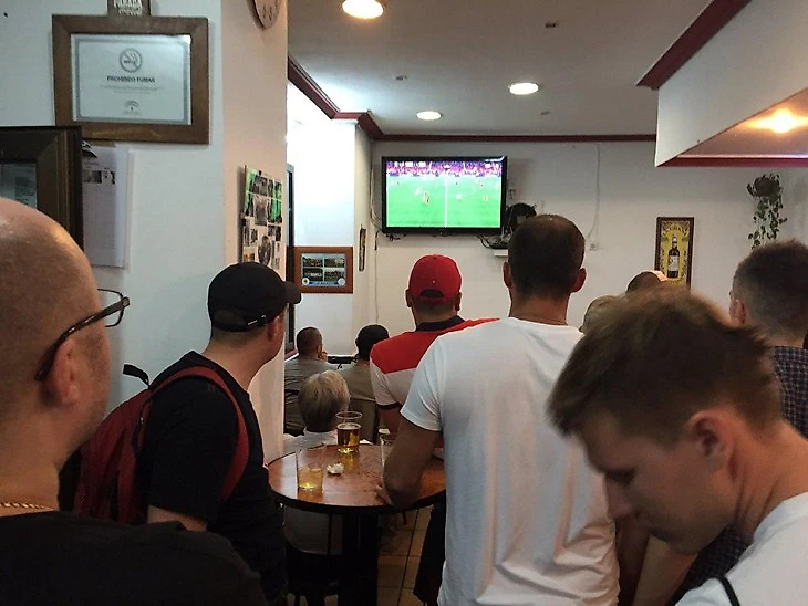 В баре матч смотрел и журналист «Спорт-Экспресса» Дмитрий Зеленов, которого лишили аккредитации за то, что он снимал попытку прорыва фанатов «Спартака» на стадион.