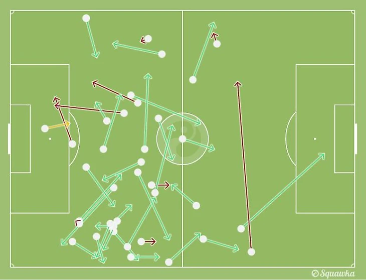Помим этого, полузащитник проиграл три из четырёх верховых дуэлей и всего один раз попытался вступить в отбор.