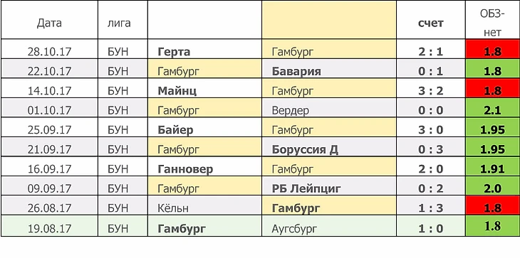 «Гамбург» в минувшем туре проиграл «Герте», но забил. Несмотря на это, как видно из таблицы, ставить на них Обе Забьют-нет пока выгодно.