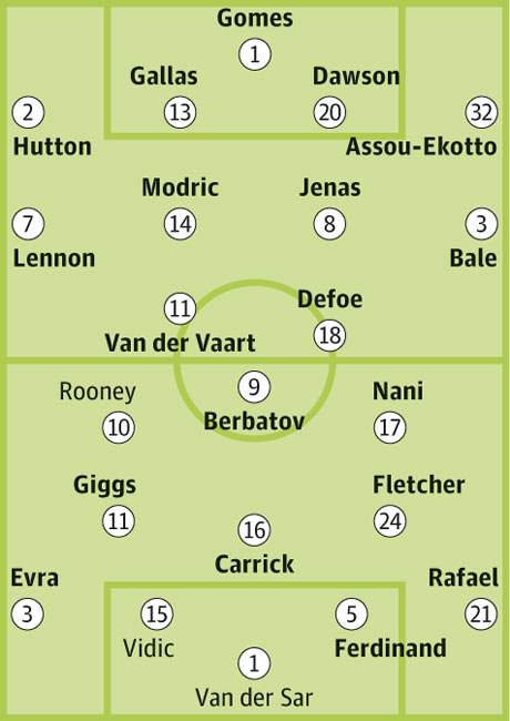 «Манчестер» же, скорее всего, будет играть по схеме 4-3-3, где Бербатов центрфорвард, Руни вместе с Нани на позициях вингеров, Гиггз и Флетчер в центре, а Каррик будет играть роль опорника. В центре защиты Видич и Фердинанд, крайних защитников будут играть Рафаэль и Эвра.
