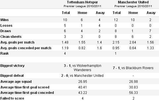Стоит вспомнить про матч с «Сандерлендом», где на подготовку к матчу было отдано много времени, и команда сэра Алекса показала футбол наивысочайшего класса. Это значит, что Алекс Фергюсон умеет готовить своих футболистов к важным матчам. Не исключено, что так получится и в этот раз. Тем более что статистика говорит, что уже как 23 встречи во всех турнирах между «Манчестер Юнайтед» и «Тоттенхэмом», последнему не удавалось выиграть не разу.