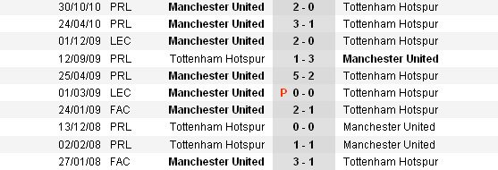 Последняя победа «шпор» над «Манчестер Юнайтед» зафиксирована на «Уайт Харт Лейн» со счетом 3-1 в мае 2001 года. После этого они ни разу не побеждали «красных дьяволов» в 19 матчах чемпионата, 2 игроах Кубка Англии и 2 матчах Кубка Лиги.