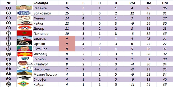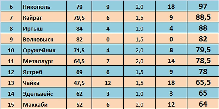Сразу 4 (!) команды набрали по 6 очков. Феникс, Ястреб, Кайрат и Мурманск дико мешают друг другу...