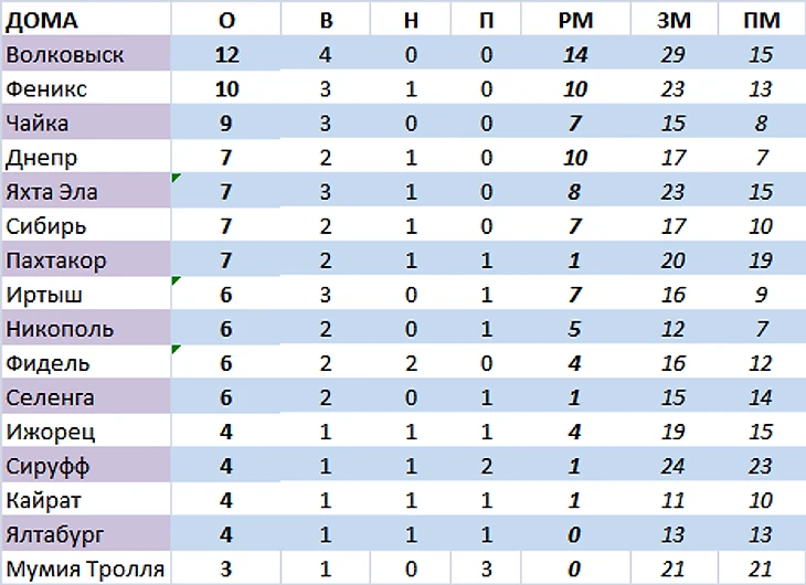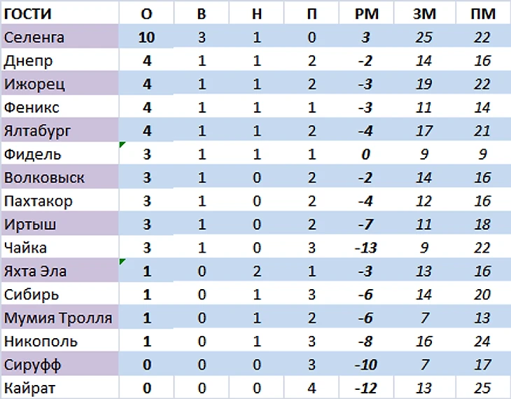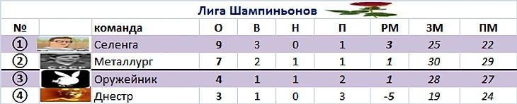Патриот, Днепр и Иртыш набрали по 4 очка и считают разницу мячей.