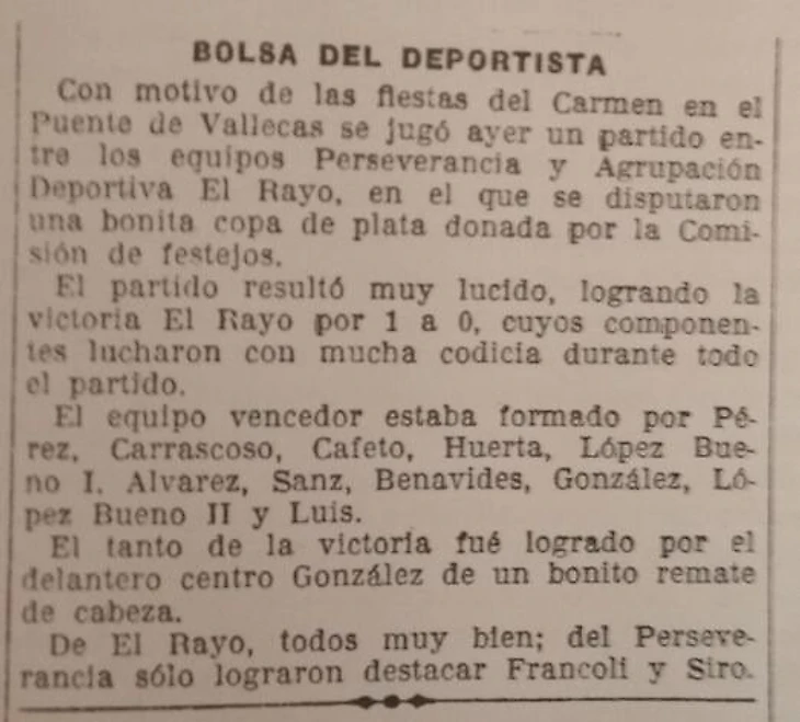 Репортаж о матче, в котором Райо Вальекано завоевал один из первых своих торфеев, газета Ла Либертад, 19 июля 1925 года.