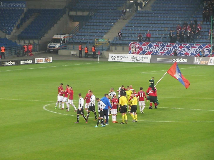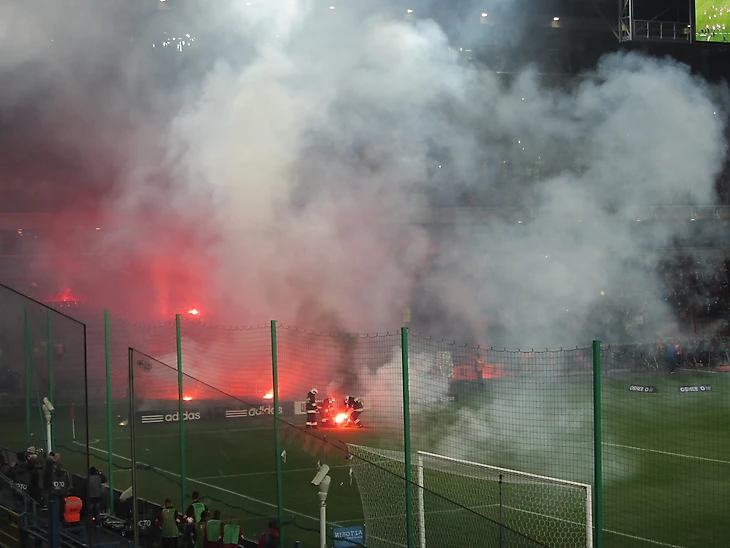 Гости из Новы-Сонча вместе с фанатами «Краковии» зажгли красные файера и начали забрасывать ими поле и соседнюю трибуну. Судья минут на пять приостановил игру. Пожарные гасили возникающие очаги.