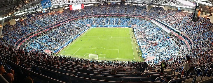 Одноимённый стадион проходил «тест-драйв» на кубке конфедераций летом 2017. И вот что по итогу получилось: навигация неправильная, её мало, стюарды очень медленно работают, огромные километровые очереди перед входом на стадион. Естественно многие попадая на стадион искали в нём негатив, считали, что после истории со строительством, положительного быть ничего и не может.