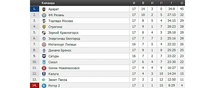 «Арарат» Москва - «Энергомаш» Белгород - 1:0 (0:0)