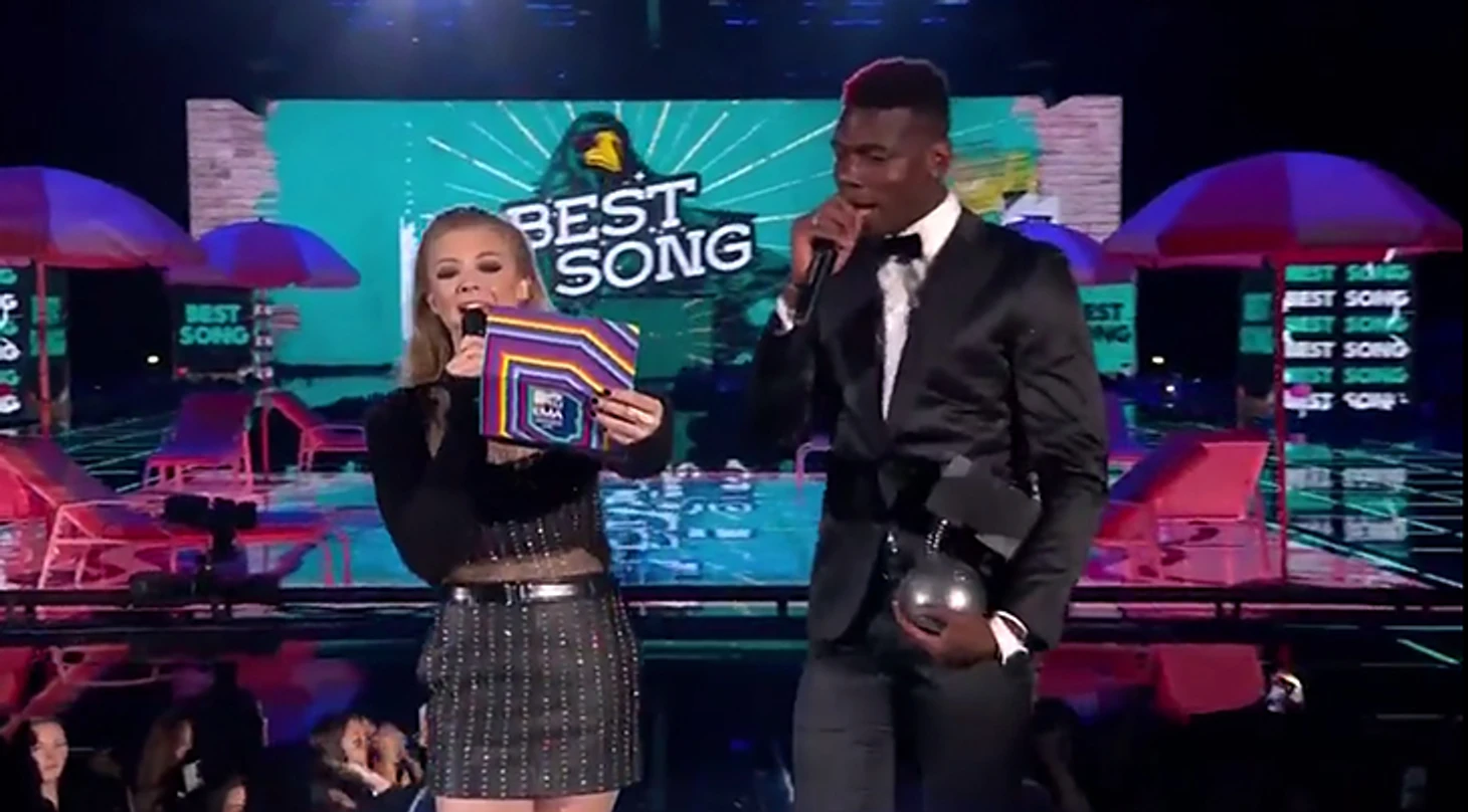 Погба в паре с Натали Дормер, известной по сериалу «Игра престолов», вручил 19-летнему Шону Мендесу награду «Лучшая песня» (There’s Nothing Holdin’ Me Back).