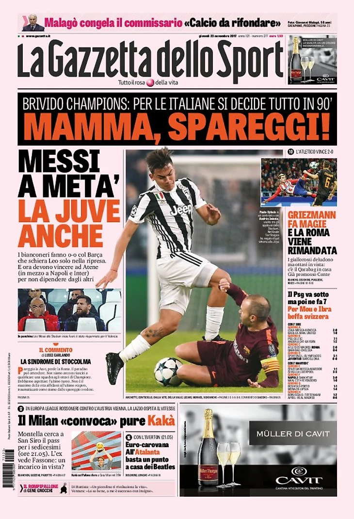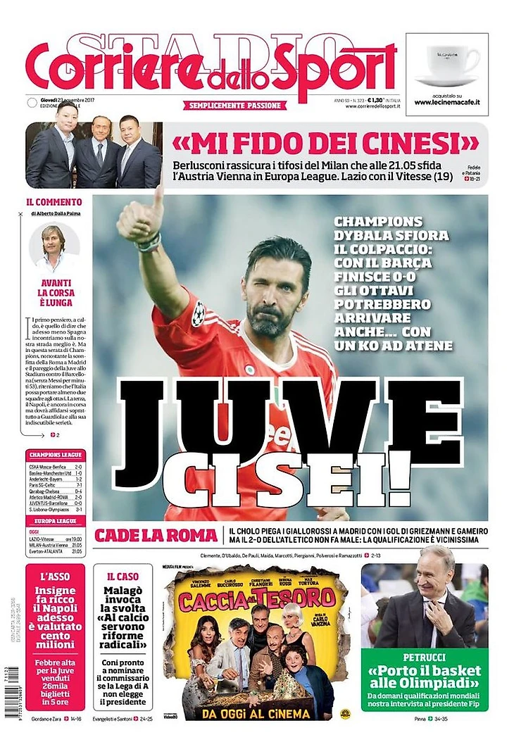 Настоящий «Юве» только в конце. Заголовки Gazzetta, TuttoSport и Corriere за 23 ноября