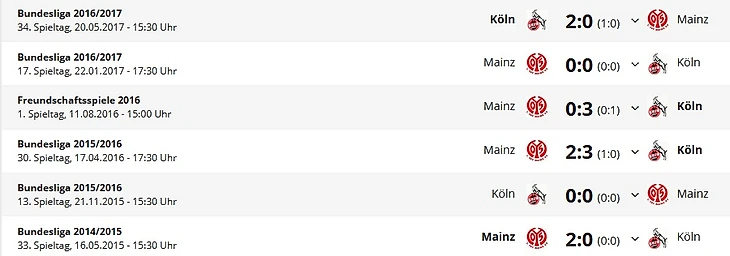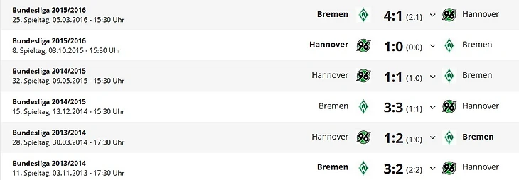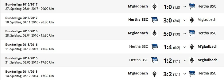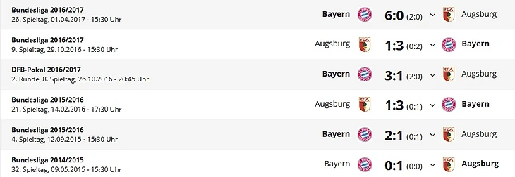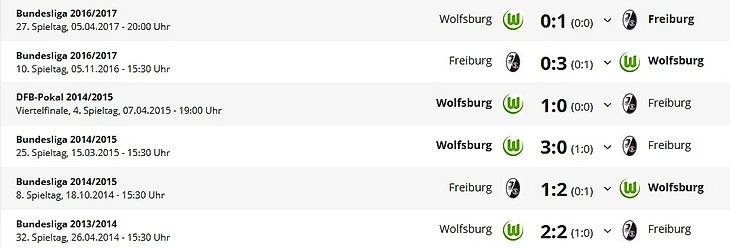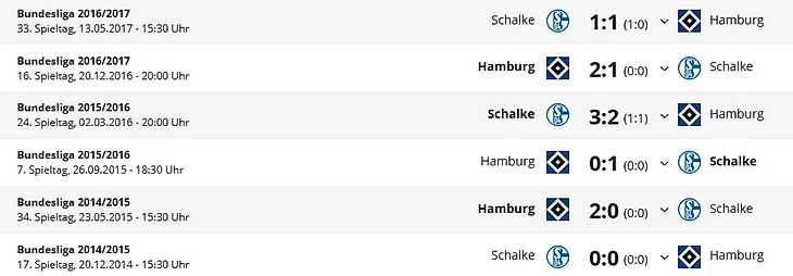 *Gesamtbilanz – общий баланс, Нeimbilanz - баланс игр дома, Remis - ничьи, Siege - победы, Тоге - голы