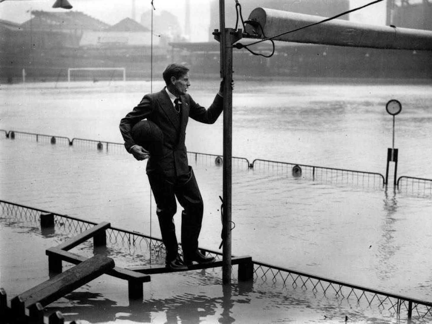 Капитан английского «Бристоль Роверса» похоже не очень рад отмене тренировки из-за погодных условий, 1951.