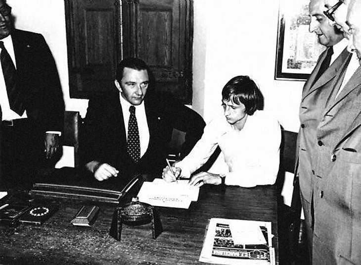 Йохан Кройф подписывает конракт с «Барсой», 1973.