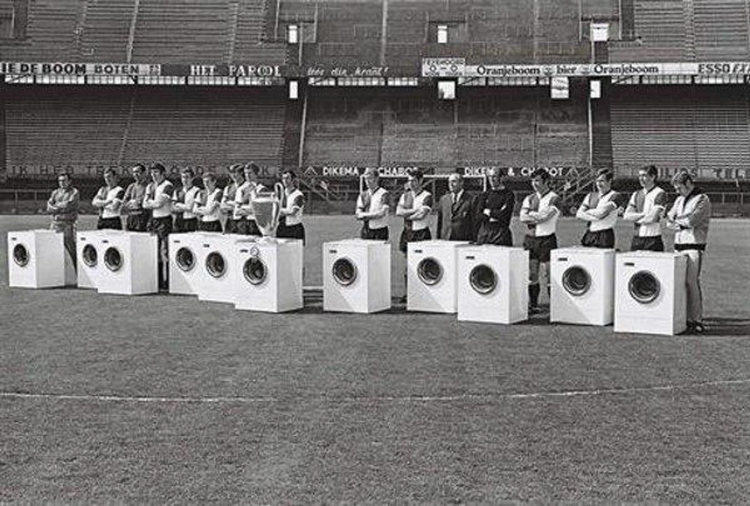 Игроки «Фейеноорда» получили по стиральной машине за победу в Кубке чемпионов, 1970.