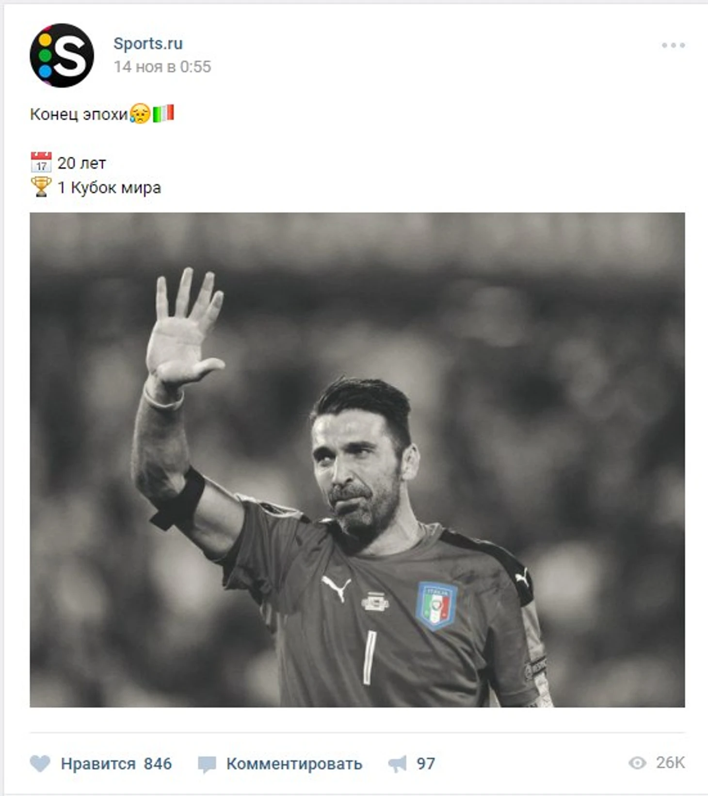 Больше всего лайков собрал, конечно же, великий Буффон. Нам будет тебя не хватать, правда!