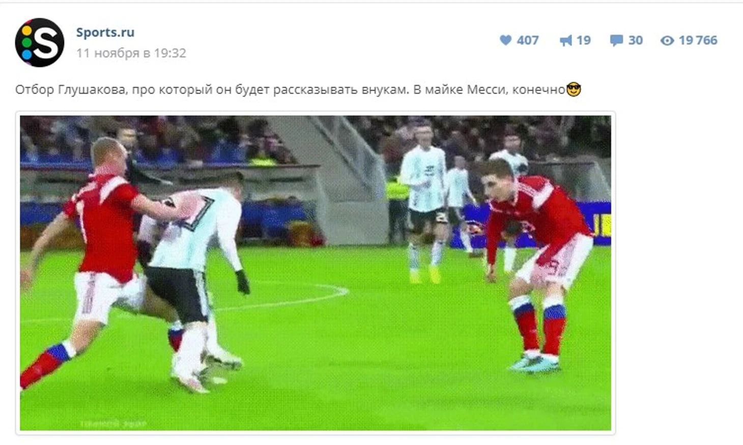 После слез Буффона и вылета сборной Италии настоящим украшением футбольной недели стал отбор мяча Дениса Глушакова у самого Месси!