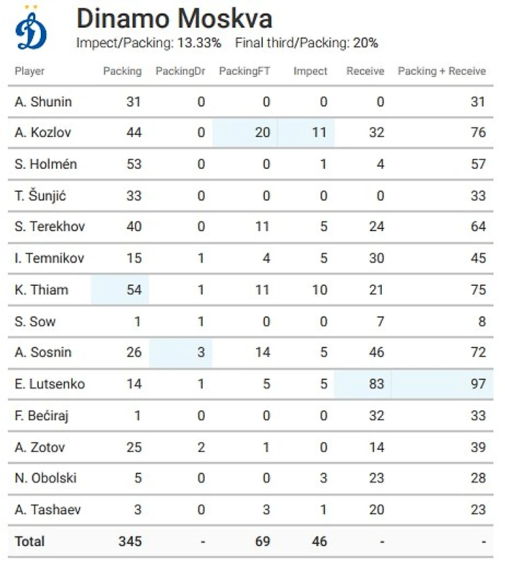 Позиционные данные также помогут сделать автоматическим подсчет пэкинга. Такую статистику считают и сейчас, но лишь в ручном режиме. Это трудозатратно и отчасти субъективно. Также внедрение автоматического подсчета приведет к тому, что число обсчитанных матчей станет намного больше, и это позволит надеяться на нахождение любопытных закономерностей и, возможно, на дальнейшее улучшение модели. К примеру, можно определять продвижение вперед не к лицевой линии, а именно к воротам; назначать отрезаниям игроков разный вес в зависимости от расстояния до ворот. Понятно, что если делать эти преобразования вручную, трудоемкость обсчета вырастет в разы.