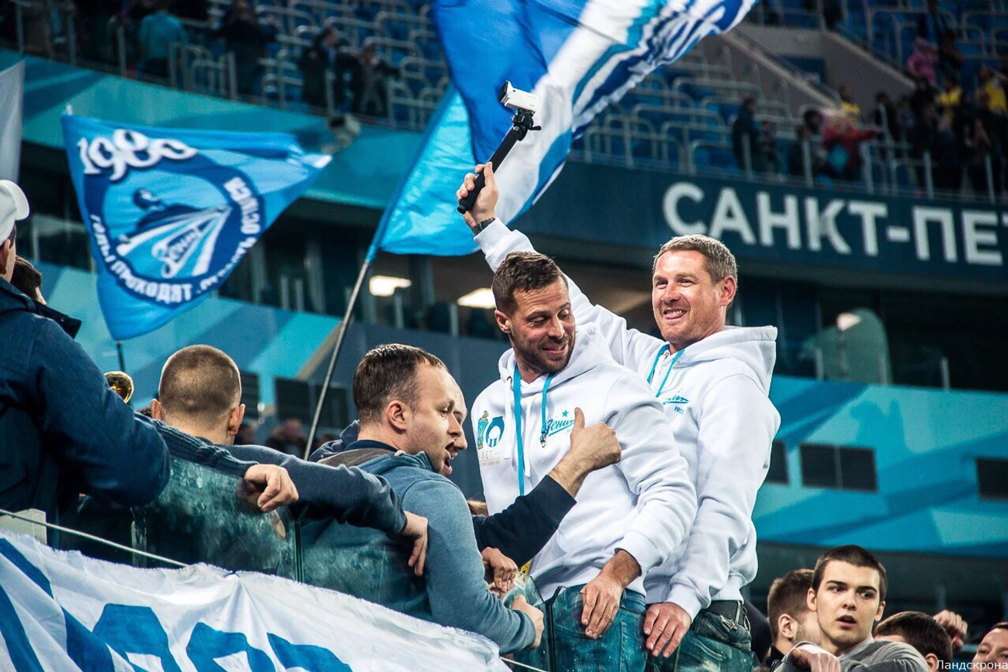 Потом был круг почета, видеопоздравления от Домингеса, Ким Дон Джина и даже Игоря Денисова (часть стадиона, к сожалению, встретила экс-капитана петербуржцев недовольным гулом). Сергей Фурсенко на радостях потребовал обязательно повторить успех 10-летней давности, а фанаты вывесили действительно крутой баннер с копией великой газеты «Наш Зенит», которая в северной столице во все времена заменяла эти ваши «Советские спорты» и «Спорт Экспрессы».