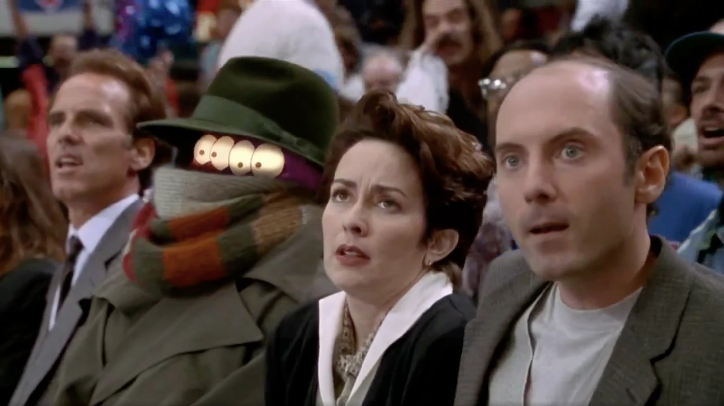 12) Фраза «Милый, этот парень в плаще – какой-то странный», брошенная женщиной на трибунах в тот момент, когда на соседнее кресло плюхнулась кучка инопланетных уродцев, завернутых в плащ. Ради всего святого, ребята, четыре желтых глаза! «Милый, не пойму, что именно не так с этим парнем, но он такой... странный!».