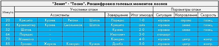 Матч с «Тосно» запомнится, в первую очередь, слаженной общекомандной работой, а не индивидуальными подвигами. Это тот редкий случай, когда полезными атакующими действиями при голевых моментах отметились все без исключения полевые игроки, включая вышедших на замену.