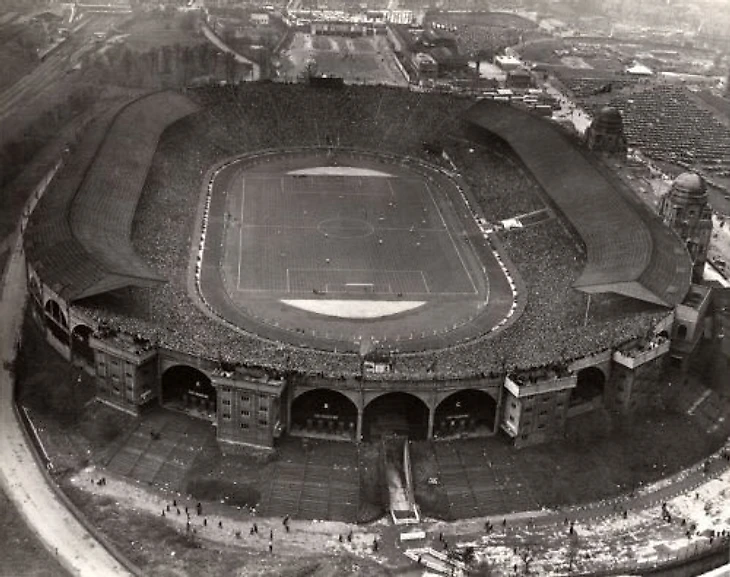 Старый «Уэмбли», на месте которого в 2007 году построили новый стадион. Изначально арена вмещала 127 тысяч зрителей, потом – 82 тысячи. Последний матч на старом стадионе сыграли 7 октября 2000 года сборные Англии и Германии.