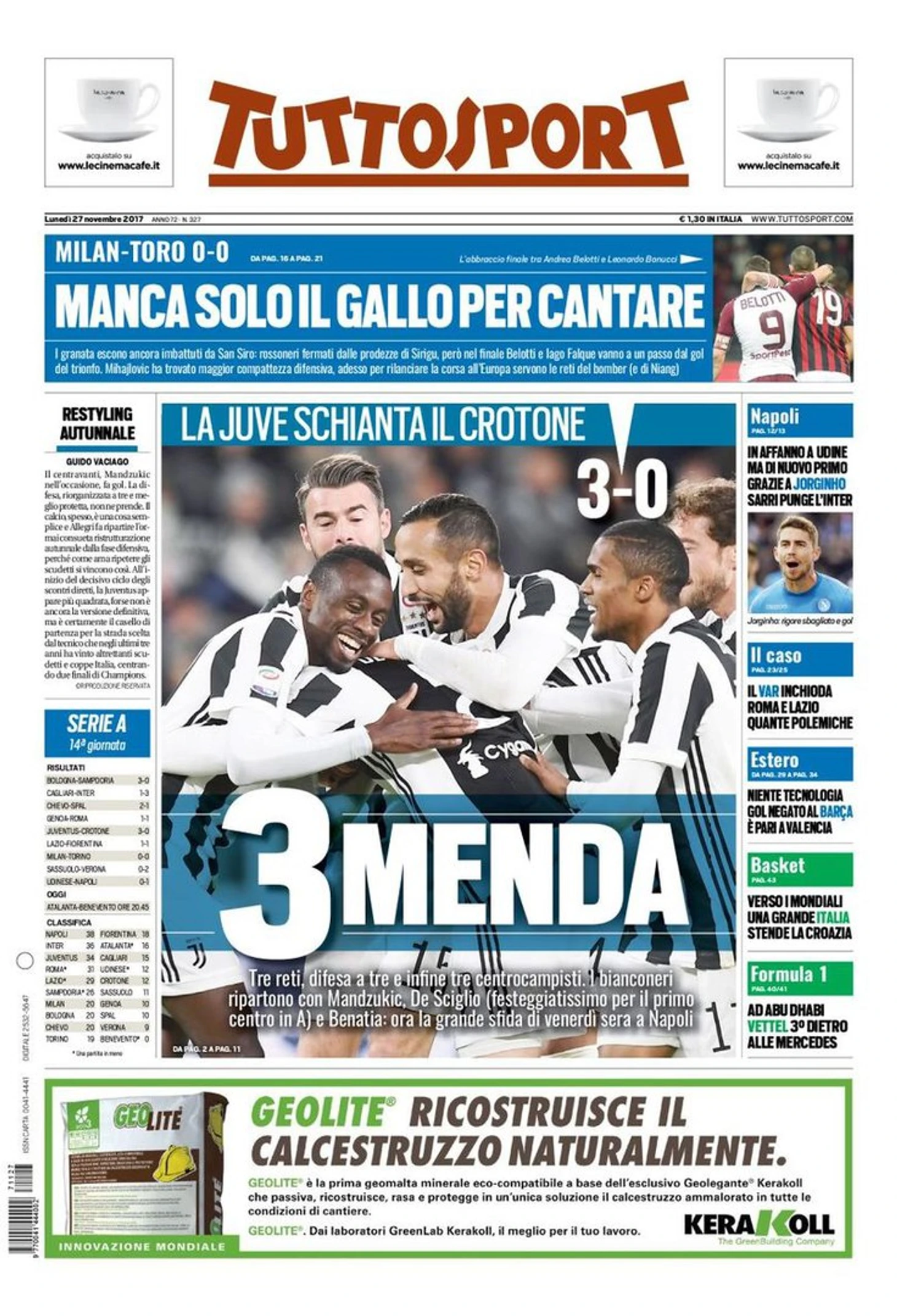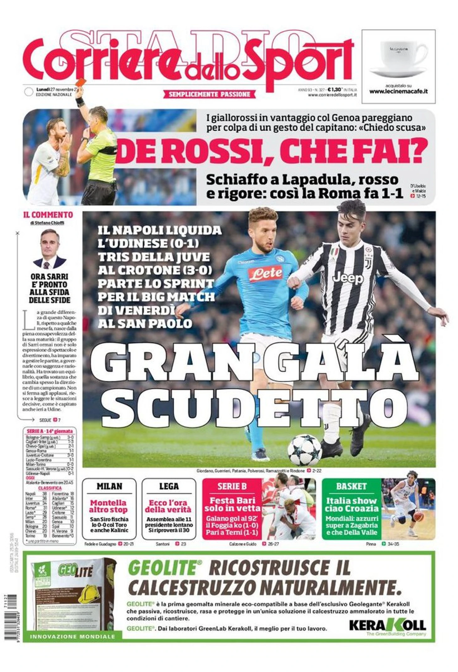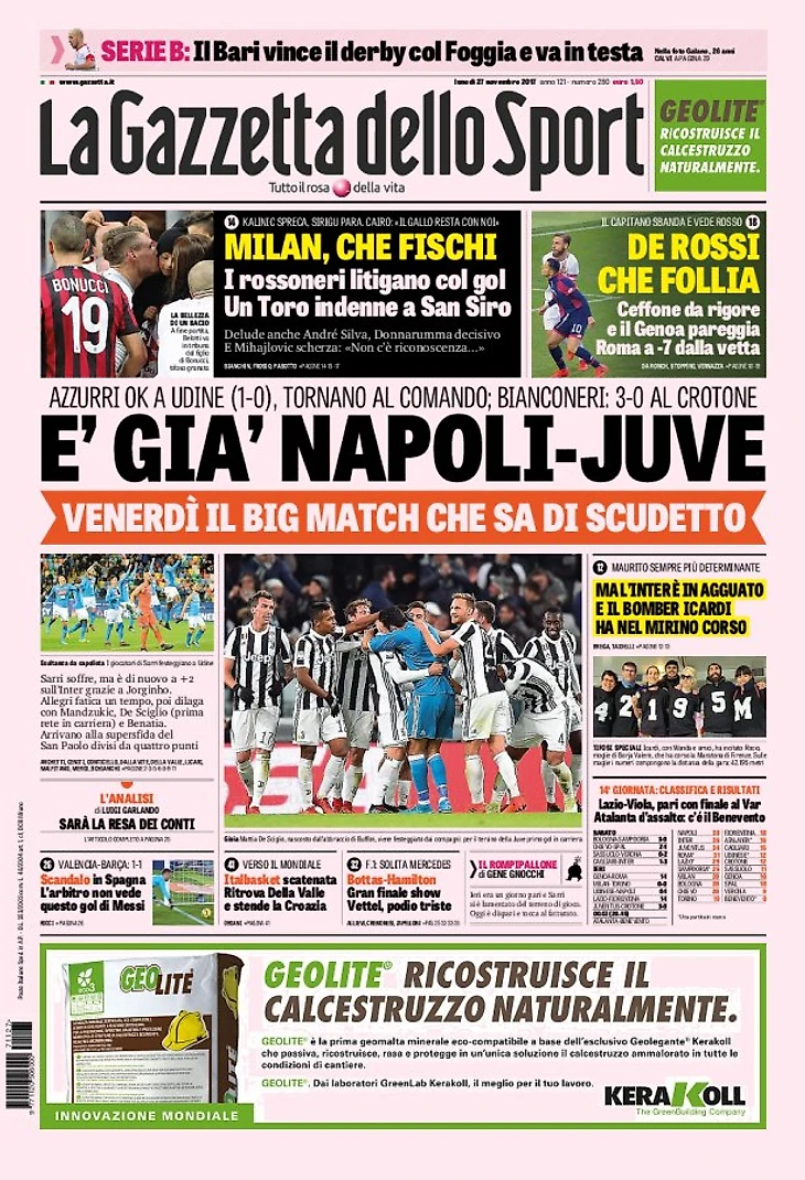 Большой вечер Скудетто. Заголовки Gazzetta, TuttoSport и Corriere за 27 ноября
