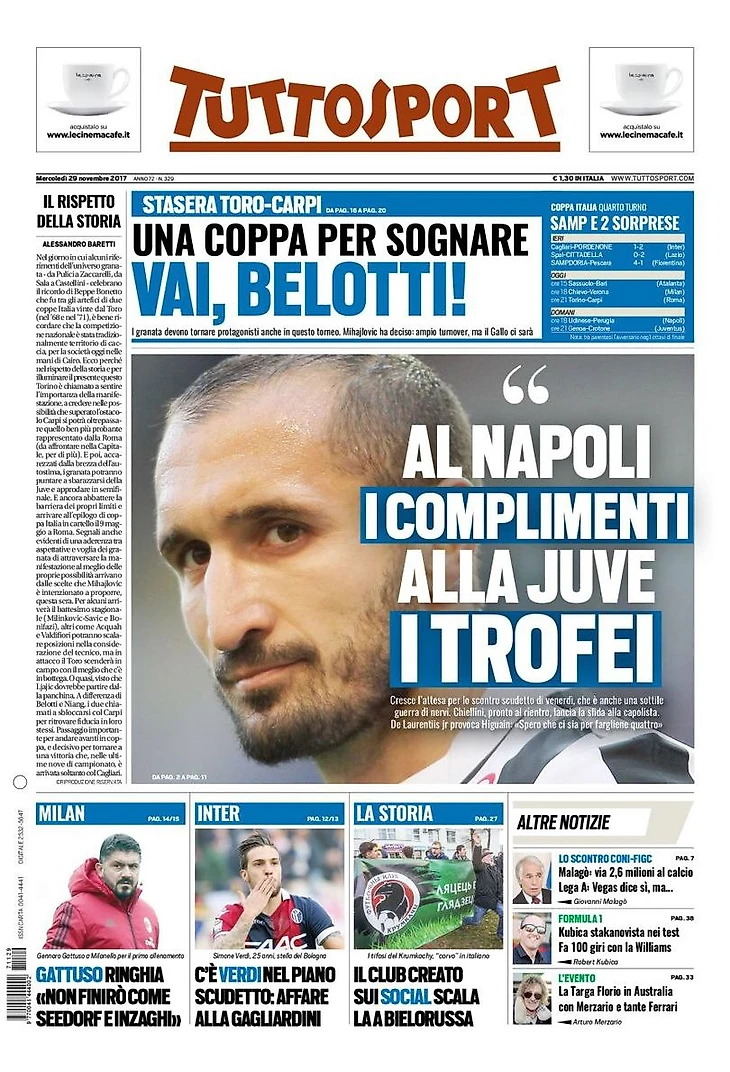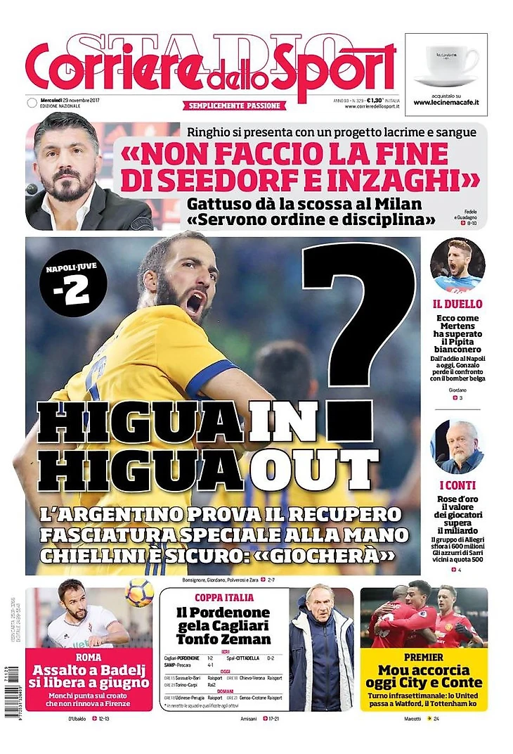 ИгуаIN? ИгуаOUT?. Заголовки Gazzetta, TuttoSport и Corriere за 29 ноября