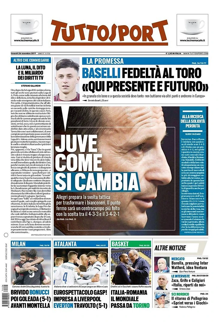 Аллегри готовит тактический переворот, чтобы трансформировать Бьянконери. Точкой отсчёта будет более плотная полузащита с выбором от 4-3-3 и 3-4-2-1.