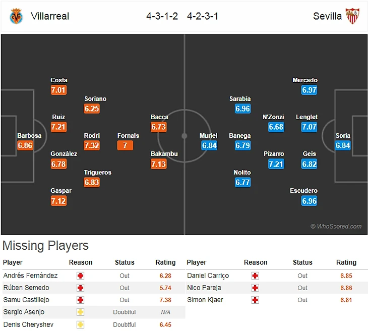 Поможет ли это игрокам восстановиться после вояжа - увидим совсем скоро. А центр севильской обороны летит на последнем крыле. Там зияют сразу три пробоины, так что Бериццо по всей видимости опять выпустит в защиту номинального опорника Гайса(5,5). Вдобавок ко всему не все в порядке со здоровьем у Стивена Нзонзи(6). Ливерпуль под эту песенку накидал андалусийцам три гола ещё в первом тайме, Лодка тут тоже может порезвиться.