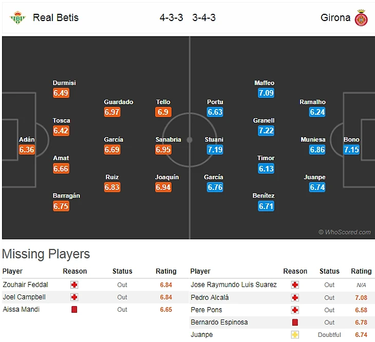 А вот Жироне сейчас не до формы. С содержанием бы разобраться. Оборона каталонцев потеряла защитника Бернардо(5) и опорника Понса(5,5), поэтому экстренное выздоровление защитника Хуанпе(5) - несомненный плюс для каталонцев.