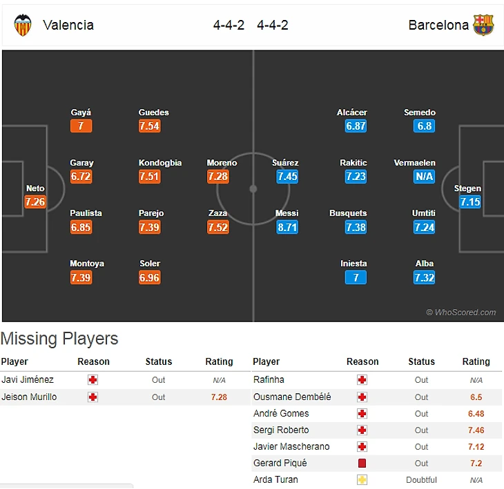 Кого брать: Нападенцев. Месси(12,5) с Суаресом(12) или Алькасером(9) либо валенсийцев Родриго(7), Гедеша(7) или Солера(6).