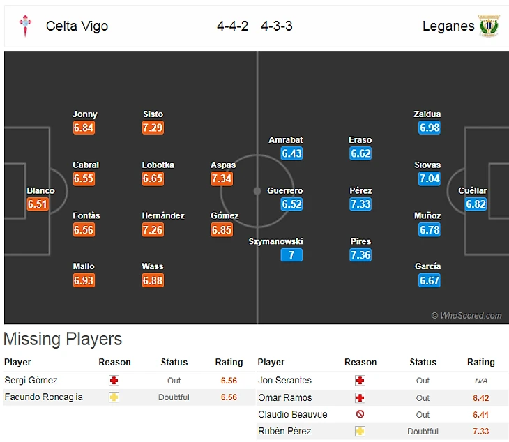 Однако повышенная защита в этот вечер потребуется не только барышням. Ворота Сельты тоже вполне могут подвергнуться нападкам, особенно опасным ввиду травм Серджи Гомеса(5) и Ронкальи(5,5). Из потерь Леганеса обращает на себя внимание травма основного опорника команды Рубена Переса(5,5) который пропустит выезд в Виго вместе с Мантовани(5,5) и Диего Рико(5,5).