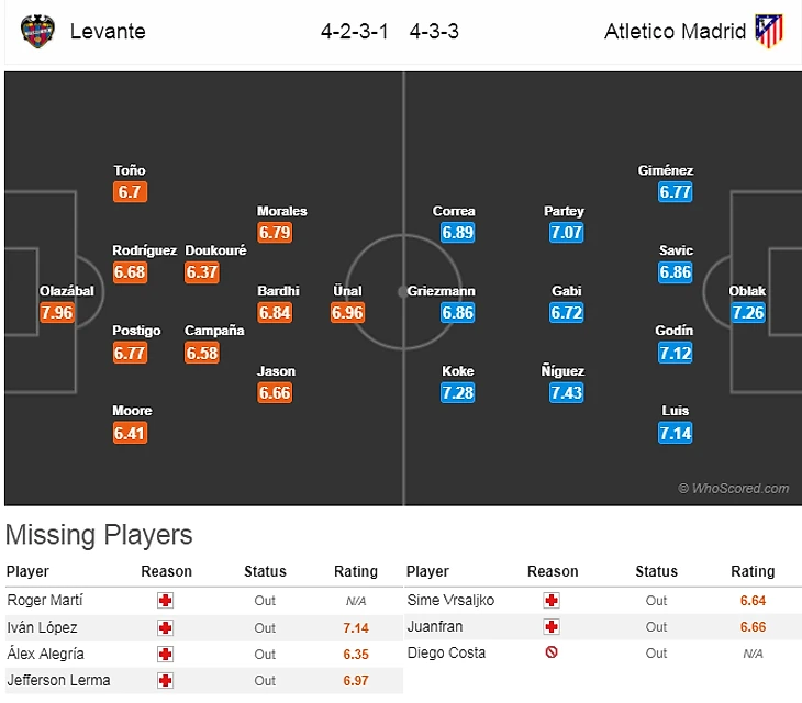 А ещё немного силы не помешало бы атаке Эспаньола. Баптистао(7) - сломан, Жерар Морено (7) - под вопросом.. надеяться остается только на ветерана Серхио Гарсию(6,5). Вдобавок к проблемам в атаке у попугаев нарисовались проблемы на посту номер один: Пау Лопес(5,5) пока не до конца залечил свои болячки, но тут в случае чего его тезка Диего Лопес(6) всегда готов не испортить борозды.