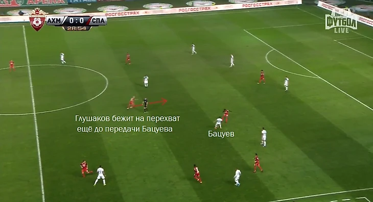 Интересно, что Денис Глушаков – лучший игрок «Спартака» по перехватам, начинающим голевые атаки (3) и контратаки в том числе (2). Часто Глушаков выполняет агрессивную роль в прессинге, резко выбрасывается в отбор. Иногда это приводит к печальным последствиям и распахивает центр поля «Спартака», если центральные защитники не страхуют высоко или проигрывают единоборство. Но когда Глушаков перехватывает мяч за центральным кругом, он сам настроен продолжить и завершить атаку. В контратаках Денис сделал 2 предголевых паса – столько же, сколько Фернандо – а в Грозном сам завершил атаку, которую начал перехватом.